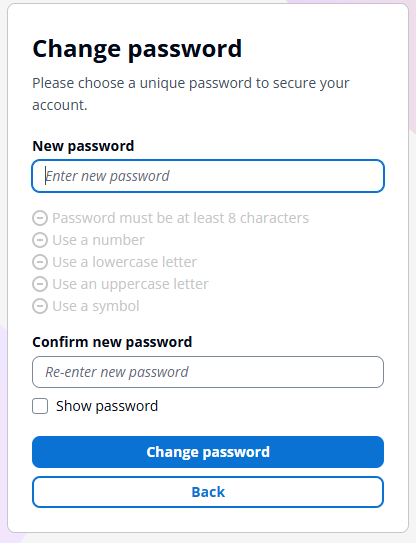 上記で作成したユーザーにてログインすると、初回のパスワード変更を求められる