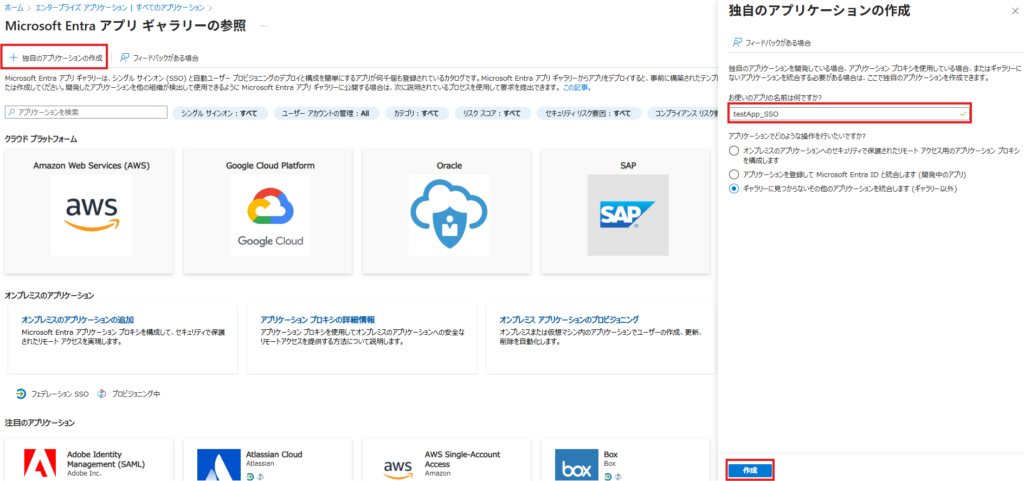 「独自のアプリケーションの作成」を選択し、任意のアプリケーション名を入力後、作成を選択