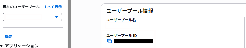ユーザープールID、ユーザープールドメイン、ユーザープールクライアントID:作成済のもの