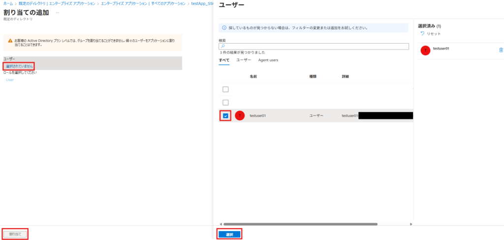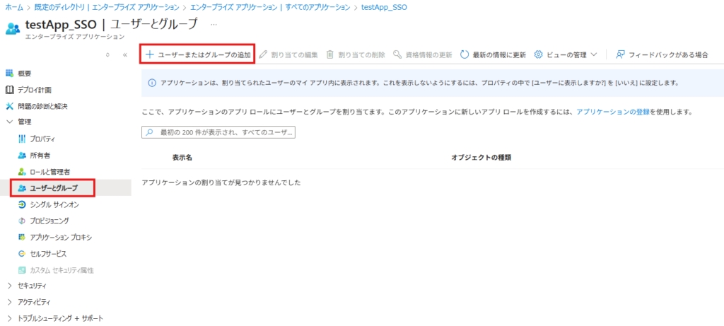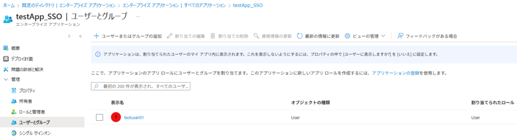 実際に認証させたいユーザーを作成したアプリに割り当てる
