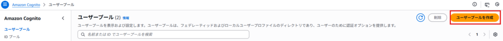 Amazon Cognitoの設定画面を開き、「ユーザープールの作成」を選択